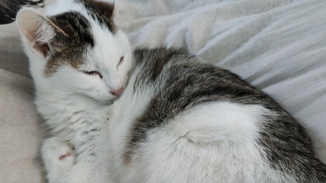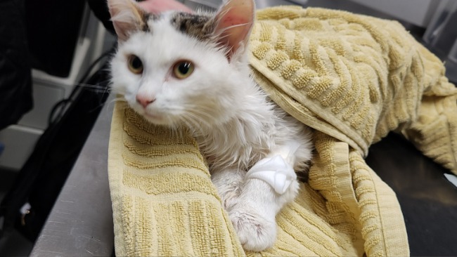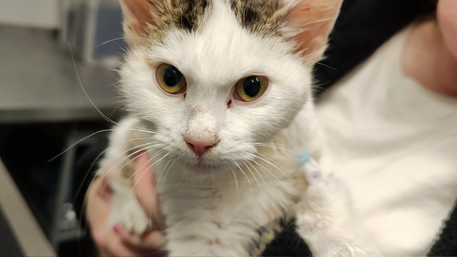 Wyniki badań wykluczyły FIP. Kotek jest leczony pod kątem kaliciwirozy. Śnieżynka zmaga się jeszcze z anemią i dwiema opuchniętymi łapkami, które nadal utrudniają jej prawidłowe poruszanie się. Jej stan zaczyna powolutku się poprawiać, co daje nadzieję na powrót do zdrowia, jednak dalej potrzebuje opieki weterynaryjnej.