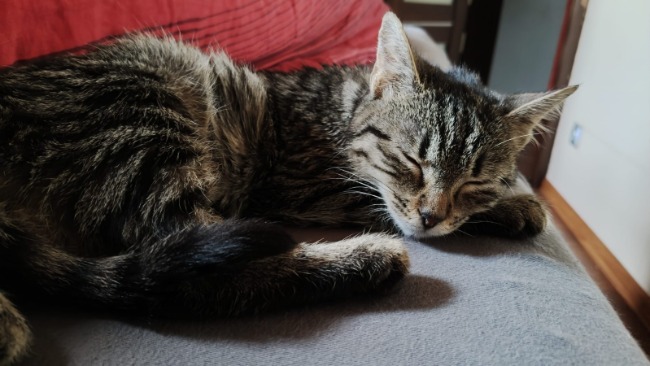 Fryzia to maleńka, delikatna koteczka, która od początku swojego życia musiała mierzyć się z przeciwnościami. Trafiła do schroniska jako maleństwo – najmniejsza, najsłabsza, zawsze w cieniu większych kociąt. W październiku los się do niej uśmiechnął – została wypatrzona przez naszą rodzinę. Zakochaliśmy się w jej ufnych oczach i postanowiliśmy dać jej szansę na lepsze życie. Razem z nią przygarnęliśmy jeszcze jednego towarzysza, by Fryzia miała przyjaciela.