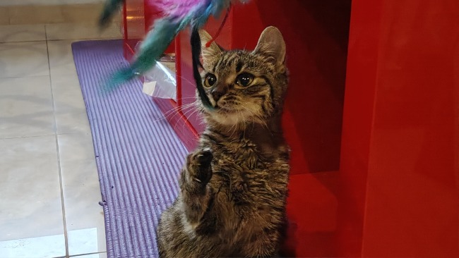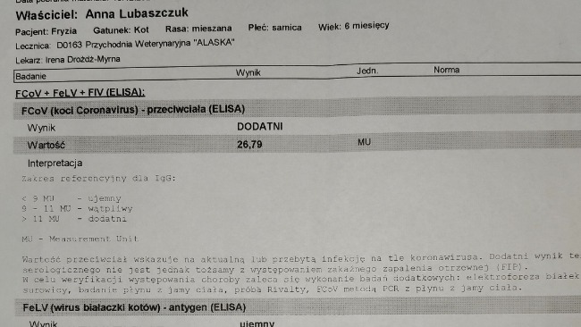 Na początku Fryzia była cichutka i wycofana, jakby bała się uwierzyć, że to wszystko dzieje się naprawdę. Ale kiedy poczuła się bezpieczna, zaczęła pokazywać, jaka jest – ciekawska, radosna, spragniona kontaktu z człowiekiem. Każdy, kto poznał Fryzię, wie, że to kotka o ogromnym sercu, która potrafi zaskarbić sobie miłość w ciągu chwili. Niestety, szybko zauważyliśmy, że coś jest nie tak – Fryzia rosła bardzo wolno, a mimo pełnej miski pozostawała chudziutka i drobna. Zaczęliśmy szukać przyczyny, odwiedziliśmy wielu weterynarzy, aż w końcu usłyszeliśmy diagnozę, która zmroziła nam krew w żyłach: FIP.