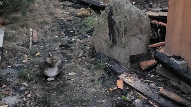 Pożar drewnianego domku karmicielki kotów którymi opiekujemy się od strony medycznej i bytowej od ponad 4 lat. W domku nie było instalacji elektrycznej ani żadnego piecyka.