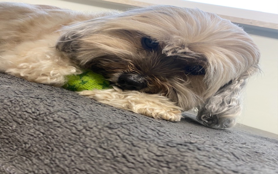 Na codzien to przesympatyczny, pelen zycia piesek, niestety w ta niedziele sie to zmienilo i od niedzieli jest pograzona w bolu i sie nie porusza.