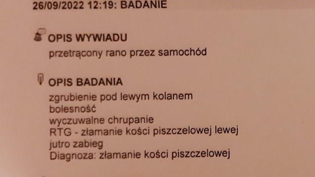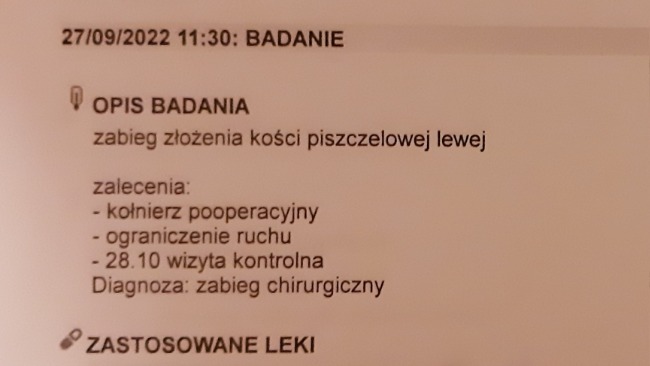 Chłopak czuje się dobrze, ma apetytZa 10 dni ściągnięcie szwów oraz RTG kontrolne.