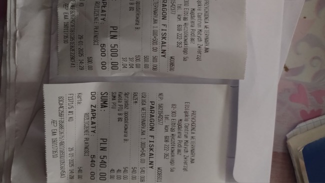 Niestety, dwa tygodnie temu nasz świat się zachwiał. Wyczuliśmy u Fifi guz na lewym boku. Natychmiast zawieźliśmy ją do weterynarza w Elblągu. Badania (USG, RTG, morfologia) potwierdziły najgorsze obawy: guz rozprzestrzenił się na nerkę, którą prawdopodobnie trzeba usunąć. W Gdańsku, po tomografii z kontrastem, okazało się, że podobna zmiana pojawiła się po drugiej stronie ciała. Pobrano wymaz – czekamy na wyniki, ale już wiemy, że Fifi czeka co najmniej jedna poważna operacja, a może nawet dwie.
