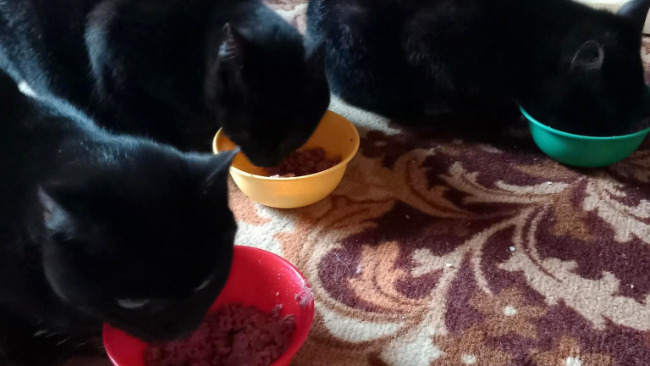 Z dnia na dzień coraz bardziej się oswajają. Patrzą z wyczekiwaniem co danego dnia wpadnie im do miseczek, zjedzą wszystko przy akompaniamencie mlaskania, a potem rozkosznie się przeciągną i umyją sobie pyszczki.