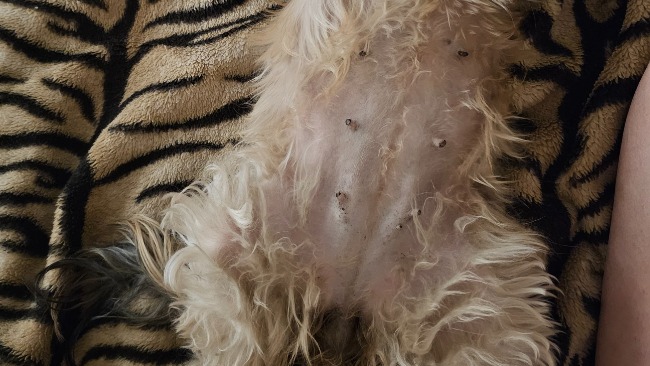 Co do listwy mlecznej to prawdopodobnie Psiara była w ciąży w której straciła młode i przez to zbierało jej się mleko które nie zostało ściągane i obok każdego sutka ma guza który musi zostać usunięty operacyjnie co niesie za sobą kłopoty hormonalne.