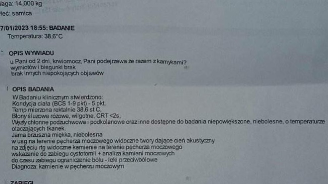 JESTEŚMY PO WIZYCIE U WETERYNARZA USG I RTG POTWIERDZIŁO DUŻE ILOŚĆ KAMIENI W PĘCHERZU , POTRZEBNY JEST ZABIEG ICH USUNIĘCIA .