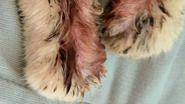 Retro cały czas otrzymuje leki, jest dokarmiany. Nadal jest chudy, ale z dnia na dzień widać, że zaczyna iść w dobrą stronę.