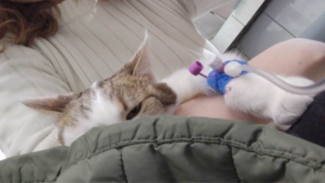 Waga spadła do 1,6kg przez odwodnienie i stan małej, najprawdopodobniej organizm nie przyswajał składników odżywczych od kilku dni, bo apetyt jej dopisywał.