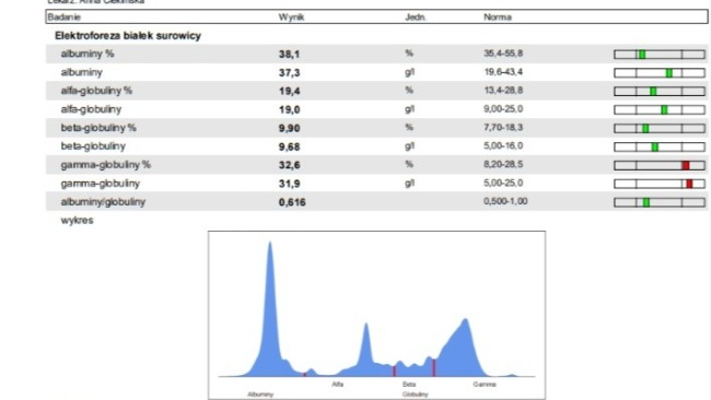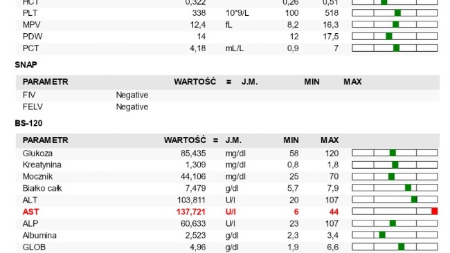 Poszerzyliśmy diagnostykę o elektroforezę białek, bo już tylko to nam zostało. Wynik nie zaskoczył, ale zasmucił – FIP.