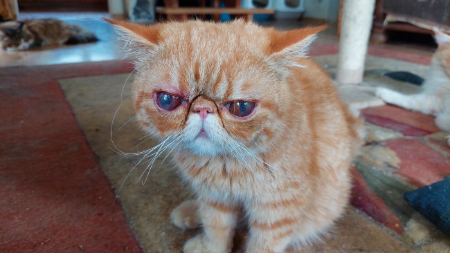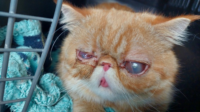 Gienio trafił do nas w dramatycznym stanie. Herpeswirus, owrzodzenia w pyszczku, stan zapalny dziąseł taki, z których lała się krew…
