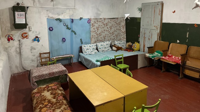 В укритті є ліжка та ковдри — старі й зношені, непридатні для маленьких дітей. Під час тривалих тривог діти намагаються відпочити, але часто змушені лежати на підлозі. Також бракує нормального туалету та умов для гігієни. Це не умови для дошкільнят.