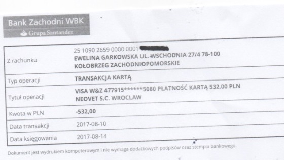 Przedstawiam paragony. W kosztach nie są uzwzgędnione koszty dojazdow do klinik, które szacujemy na kwotę przeszło ponad 4000 zł.