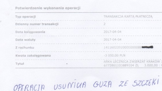 Rachunki płacone gotówką rownież wstawie. Koszty już przekroczyły znacznie kwotę zbiórki i bazarku.