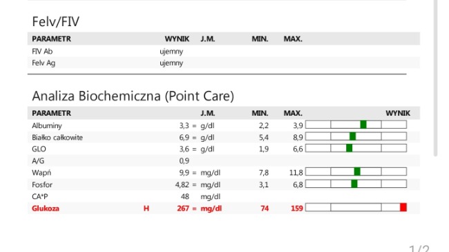 Zrobiliśmy wyniki, na szczeście fiv i felv kotka ma ujemne.
