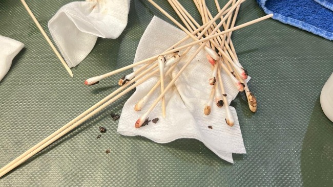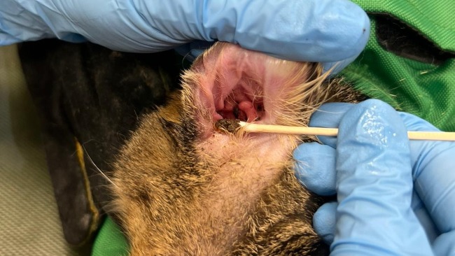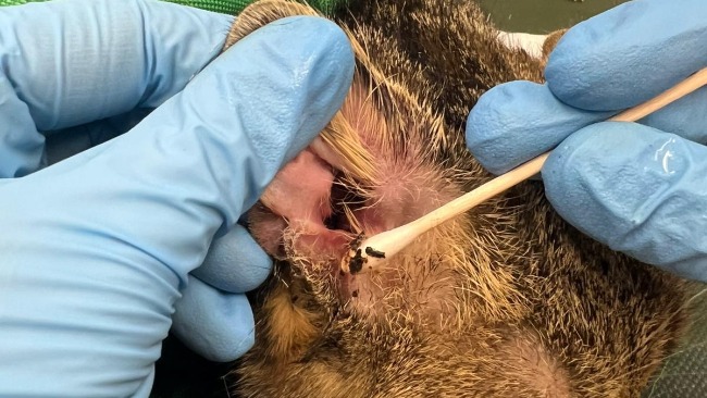 Kotka ma bardzo chore uszka, dostała lek na świerzba.