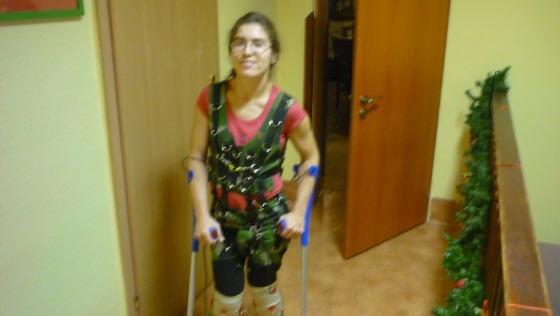 Chociaż przez te lata próbowałam zapomnieć o niepełnosprawności to choroba wcale nie chciała zapomnieć o mnie. Z czasem odezwała się coraz częstszym bólem, wzrastającą spastycznością oraz problemami z poruszaniem się. Zaoszczędzone pieniądze postanowiłam przeznaczyć na turnus. Pojechałam na niego w grudniu 2013 roku 33 lat. Z racji tych wszystkich lat bez rehabilitacji nie liczyłam na cuda. A tam okazało się, że mogę chodzić o kulach (do tej pory moje poruszanie się wyglądało tak, jakbym skakała ciągnąć nogi za sobą). Zrozumiałam, że to dopiero początek. Aby zrealizować swoje życiowe plany i w pełni cieszyć się życiem turnusy muszą być regularnie powtarzane. W ciągu ostatnich dwóch lat potencjał mojego organizmu zaskoczył i mnie i rehabilitantów. Nauczyłam się chodzić o kijkach. Dzięki temu mogę poruszać się samodzielnie nawet na dużych odległościach. Stało to dla mnie ogromną zachętą i zapragnęłam jeszcze bardziej poprawić swoją sprawność fizyczną.