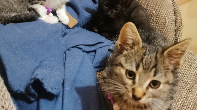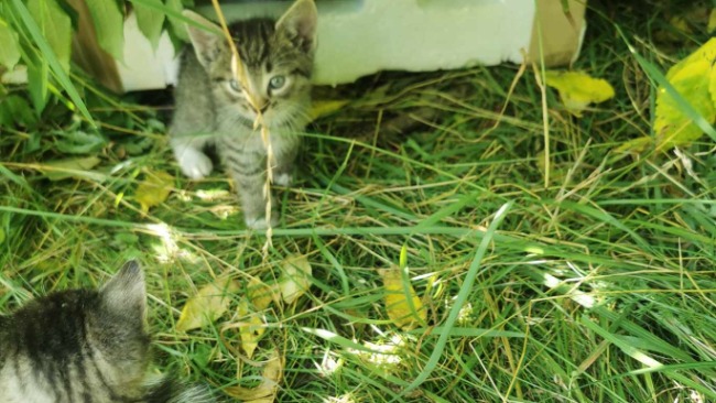 Ta czwórka maluszków trafiła do mnie miesiąc temu, kiedy dostałam zgłoszenie o wyrzuconych maluszkach przy drodze. Kiedy pojechałam na miejsce, zastałam styropianową budkę w krzakach przy drodze, oraz 4 kocie dzieci z niebieskimi oczami, które powinny być jeszcze z matką.