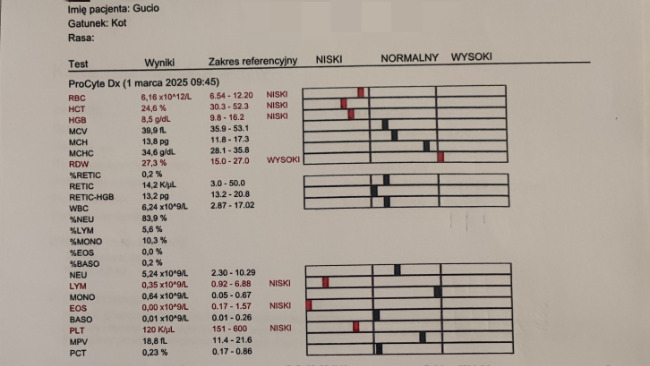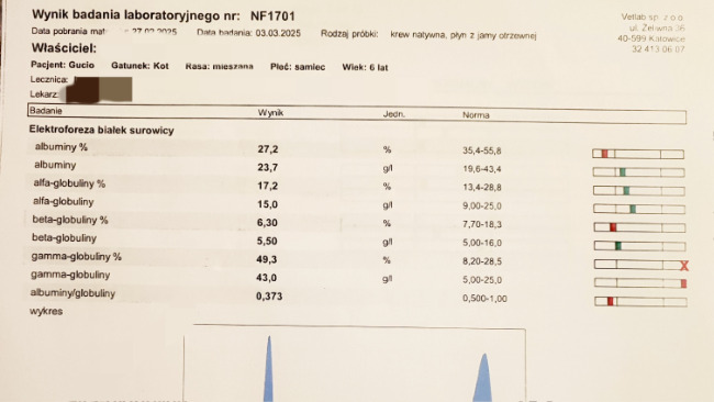 Pod konie lutego Gucio stracił apetyt, po szybkiej wizycie u weterynarza, badaniach krwi i USG, padła pierwsza, wstępna diagnoza - zakaźne zapalenie otrzewnej. Stan Gucia pogarszał cię z godziny na godzinę, potrzebna była kilkudniowa hospitalizacja w jednej z krakowskich klinik weterynaryjnych.