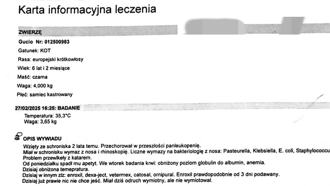 Dziękuję serdecznie za każdą złotówkę, która pozwalam walczyć o życie naszego kota i dać mu jak najlepszą opiekę w tym trudnym czasie.