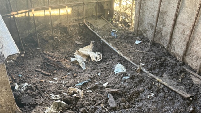 Ale najgorsza była gnojówka, która spływała do środka prosto od bydła. Wlewała się do kojca, mieszała się z Jego odchodami i moczem, zalewała każdy centymetr podłoża. Pies całe życie stał i leżał w tej brudnej, cuchnącej cieczy, z której unosiły się chmary meszek i komarów. Owady kąsały Go bez końca.