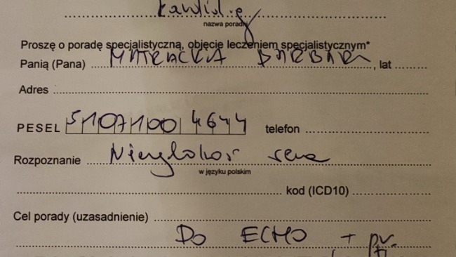 Codziennie z nóg cieknie mi woda, robi się zgrubienie i pęka wylewa się woda, biorę leki na odwodnienie i nic nie pomagają potrzeba specjalistycznej opieki medycznej i leków na które całkowicie nie stać mnie, moje życie z dnia na dzień jest coraz trudniejsze, mam także osteoporozę co także sprawia mi ogromny ból, potrzebuje leków z morfiną, jest coraz gorzej, mieszkam z mężem który także jest bardzo schorowany i oboje spotykamy się z dużymi problemami finansowymi, nie stać nas na leczenie, z powodu długów, jest bardzo ciężko ja co dzień płacze z bólu, mało cierpienia także zrobiła mi się bardzo bolesna gołka, guzek na ręku który sprawia ogromny ból, potrzebuje pieniążków na leczenie i leki a także leczenie specjalistyczne oraz wszelkie badania oraz operacje i zabiegi, bardzo boję o swoje nogi, chciałabym żyć bez bólu i cierpienia, błagam o pomoc dobrych ludzi...