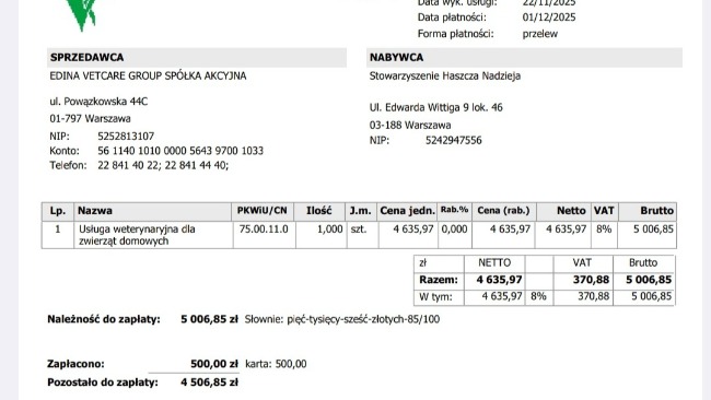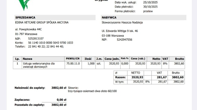 Jak wiecie ledwo wiążemy koniec z końcem, więc są to dla nas gigantyczne sumy nie do zapłacenie na ten moment. Błagamy, pomóżcie. Każda wpłata jest jak zawsze na wagę złota. Od kilku dni nie śpimy i martwimy się o Billusia, nie możemy go zawieść, nie możemy nie dać rady. Musimy być w stanie opłacić jego leczenie, ale też nadal utrzymywać resztę naszych podopiecznych. Bill na to zasługuje, ma tylko nas.