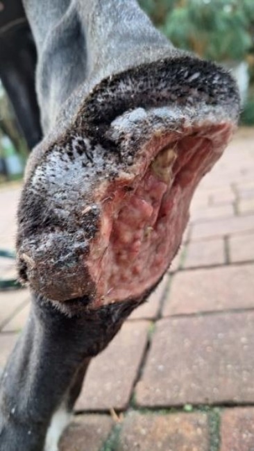 Pod opiekę Stowarzyszenia Dogi Adopcje trafił pies, którego widok łamie serce nawet najbardziej doświadczonym osobom. Adaś został zabrany z kojca, w którym po prostu… gnił żywcem.