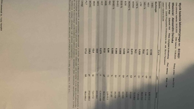 Za każde wsparcie – z całego serca dziękujemy w imieniu Maji i jej opiekunów. 💕 Poniżej zamieszczam wszystkie wyniki badań Maji