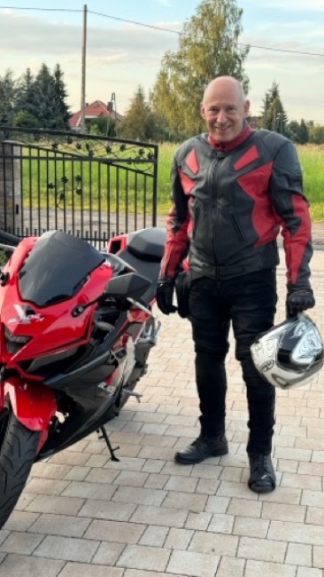 Niestety 17.09.2025r. w miejscowości Golanka Dolna uległ wypadkowi. Jerzy, jadąc prawidłowo na motocyklu został potrącony przez kierowcę, który wymusił pierwszeństwo, a co więcej, sprawca uciekł z miejsca wypadku. W wyniku tego zdarzenia, Jerzy doznał wielu urazów – złamanie żeber, kości lewej ręki oraz przede wszystkim uszkodzenia kręgosłupa i rdzenia, co spowodowało paraliż od klatki piersiowej w dół.