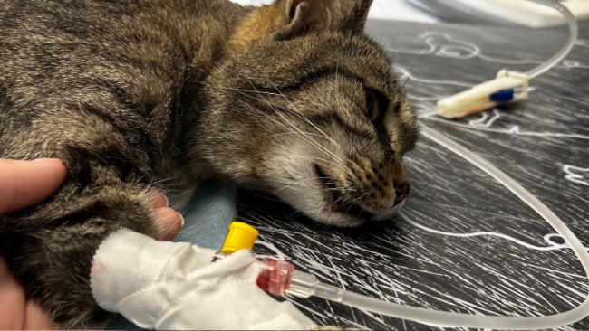 Szary z dnia na dzień czuję się coraz lepiej! Póki co do weekendu będzie przebywał codziennie na szpitalu w celu płynoterapii dożylnej i jeśli jego stan się poprawi na tyle, że będzie stabilny to będziemy kontynuować leczenie w domu kroplówkami podskórnymi z wizytami kontrolnymi w gabinecie.