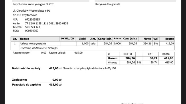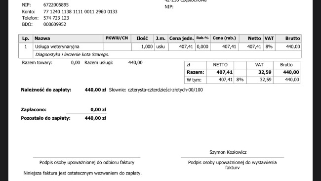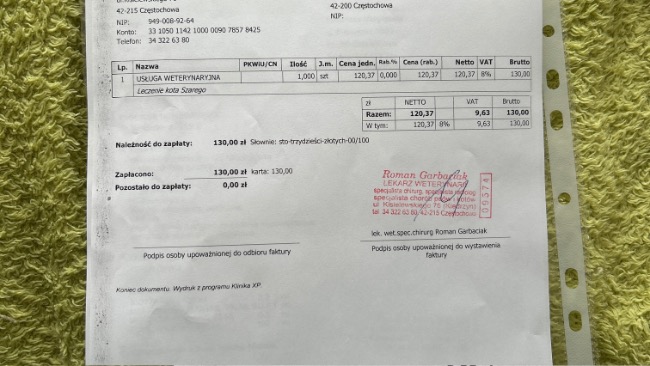 Dostalismy mailowo zaległe wypisy oraz kolejną fakturę za ostatnie dni leczenia 😞