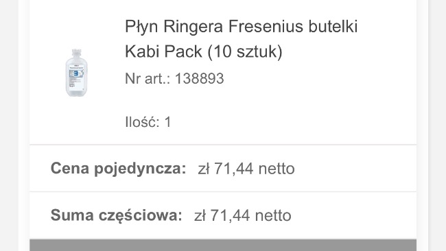 Zostały zamówione kroplówki do podania w domu w celu zmniejszenia kosztów leczenia w gabinecie.