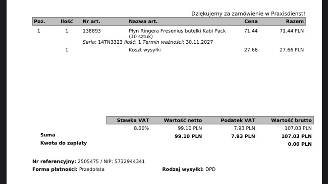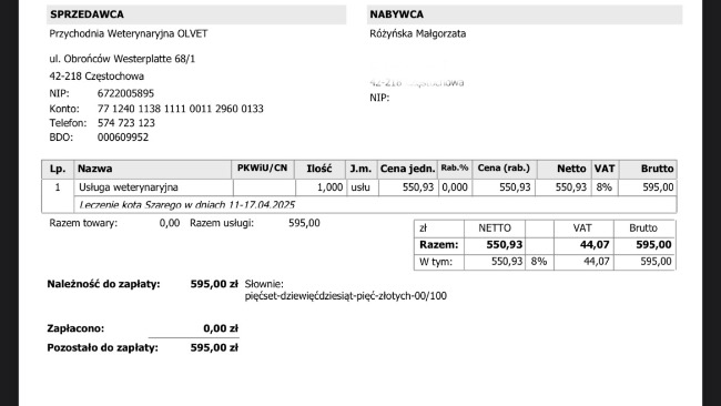 Otrzymałam dzisiaj również zaległe wypisy oraz fakturę: