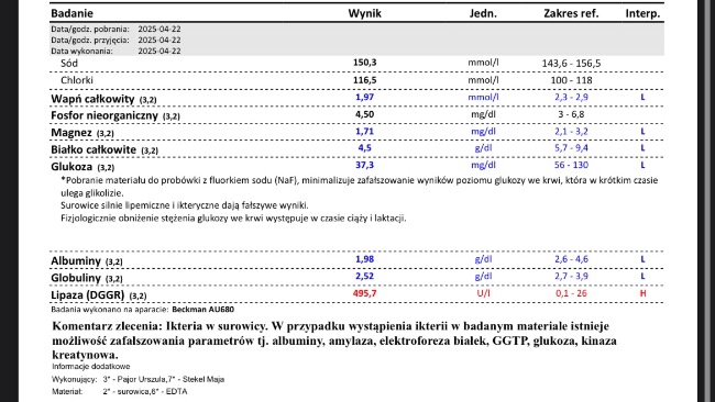 Otrzymaliśmy wyniki krwi i dostaliśmy diagnozę- triaditis, stan jest bardzo zły.