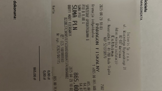 Odbyliśmy również wizytę w gabinecie za którą czekam na fakturę, ale zostałam poinformowana, że koszt wyniósł aż 380zł.