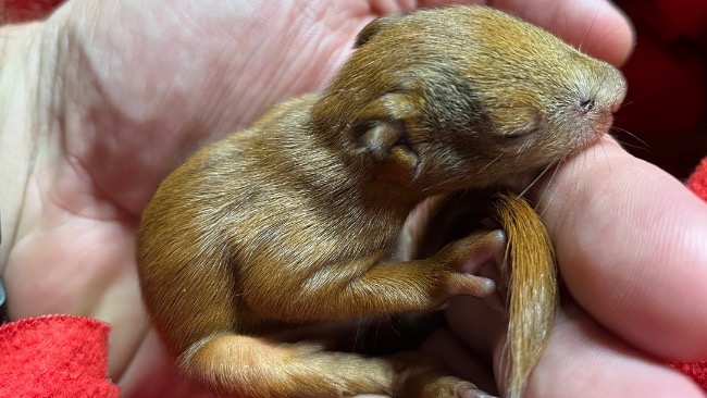 Malutkie wiewiórki, które czekają przy martwej matce, nieświadome, że już jej nie ma.