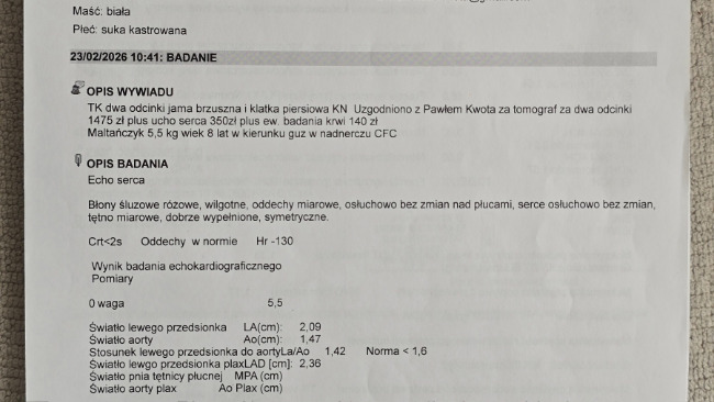 Wszystkie badania pochłonęły już przynajmniej 6 tys. zł. A przed opiekunami Ginny największe wyzwanie: operacja usunięcia trudnego guza - u jednego z najlepszych specjalistów w kraju. Wraz z hospitalizacją i badaniem histopatologicznym operacja została wyceniona na ok. 12 tys. zł. (Ostateczna kwota zależy jeszcze od przebiegu operacji, komplikacji itp.)