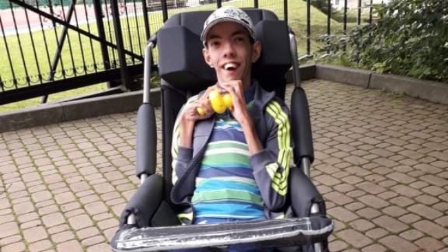 Cześć! Jestem Raduś, a może bardziej Radek, bo w tym roku obchodzę swoje 20-te urodziny. Urodziłem się jako wcześniak z chorobą genetyczną- zespołem Cri Du Chat.Bardzo ogólnie mówiąc charakteryzuje się on opóźnieniem intelektualnym oraz motorycznym. Potrafię wypowiedzieć tylko pojedyńcze i wybrane słowa, a z bliskimi komunikuje się poprzez gesty.Gdy byłem malutki dużą cześć czasu spędzałem w szpitalu ze względu na choroby górnego ukladu oddechowego, ale byłem bardzo dzielnym chłopcem i znosiłem wszystko co przynosiło życie. W późniejszych latach nauczyłem się poruszać po domu na tyłku odpychając się rękami, a dzięki intensywnej rehabilitacji potrafiłem już nawet samodzielnie stać. Ależ to była radość! I wtedy, gdy wydawałoby się wychodziłem na przysłowiową prostą okazało się, że skolioza kręgosłupa jest na tyle poważna, że musiała być zoperowana. Niestety stało się najgorsze, nie dość, że straciłem równowagę i przez to nie potrafię teraz nawet sam siedzieć to pojawiły się problemy z nerkami- mam neurogenny pęcherz i wodonercze, muszę być cewnikowany kilkakrotnie na dobę co wiąże się z częstymi zakażeniami bakteryjnymi układu moczowego, antybiotykoterapia, a często i pobytem w szpitalu. Przez to, że nie potrafię już poruszać się samodzielnie pojawiła się spastyka mięśni, która jest dla mnie bolesna. Gdyby tego wszystkiego było mało 2 lata temu najważniejsza osoba w moim życiu zachorowała na raka. Była to moja najukochańsza mama, która wychowywała mnie samotnie i z którą łączyła mnie wyjątkowa więź. Nierówna walkę z rakiem przegrała, co było i jest dla mnie nieopisaną tragedią. Na szczęście mam najwspanialszych dziadków na świecie, którzy podjęli się opieki nade mną i robią to najpiękniej jak się da!