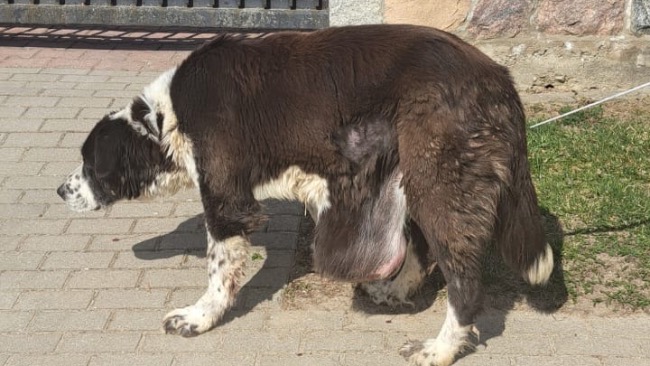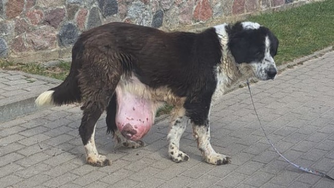 Potrzebujemy Waszej pomocy, by móc zoperować, leczyć i opiekować się jedenastoletnią sunią, która na brzuchu ma ogromnego krwawiącego od dawna guza.