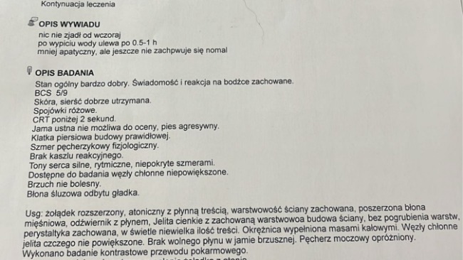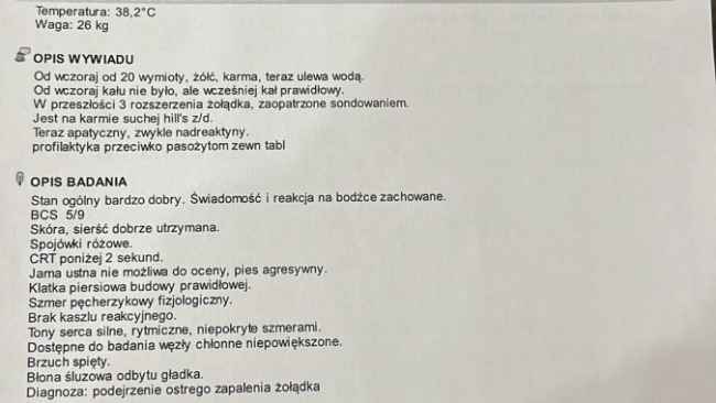 Niestety u Kovu wróciły wymioty. Miał zrobione kolejne USG, które nie wykazało w zasadzie niczego nowego. Dostał inne zastrzyki, które wyraźnie pomogły – noc była spokojniejsza, a wieczorem nieco zjadł. Wieczorem kolejna wizyta i kolejne USG, a co za tym idzie – dalsze decyzje.