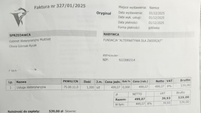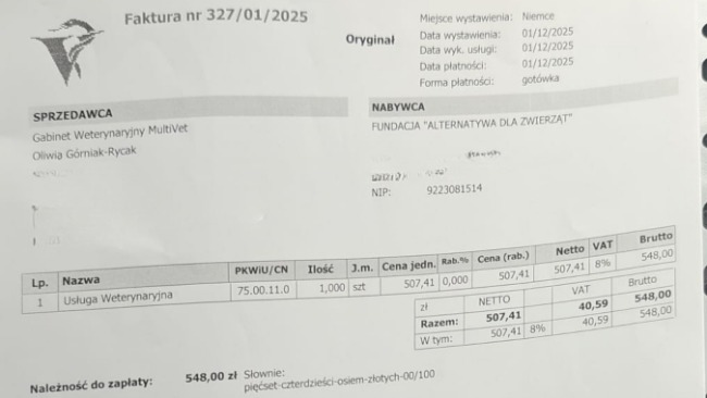 Leczenie Kovu kosztowało już ponad 10 000 zł z faktur, które dołączyliśmy tutaj do zbiórki. A to tylko te większe koszty, bo jeszcze jedzenie i suplementy... Pomóżcie nam opłacić te koszty, prosimy! :(