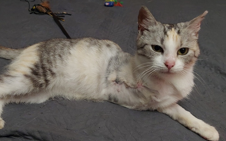 Całe szczęście, znalazły i uratowały ją cudowne osoby, które nie mogły jej zatrzymać, ale szukały dla niej pomocy. Kotka trafiła pod opiekę gminnej lecznicy i przeszła na cito amputacje łapki. Miała złamanie otwarte, które zaczęło się już zrastać, było również zmienione zapalnie i stanowiło zagrożenie dla jej życia. Niestety, nie udało się uratować łapki.