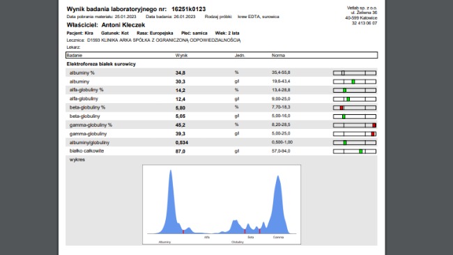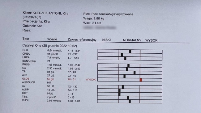 Dziękujemy bardzo za pomoc, te wyniki badań i postępy to zasługa nas wszystkich! Aby nie spamować nikomu, o ile (odpukać) nic się nie pogorszy, następną aktualizację prześlę w 60 dniu leczenia. Poniżej wrzucam zdjęcie tego słodziaka, żeby każdy wspierający mógł zobaczyć małego szatana w chwilowym bezruchu :)