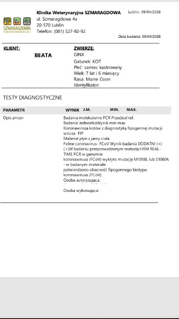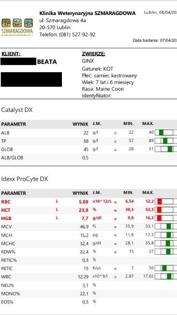 Raz jeszcze dziękujemy razem z Ginxiem za każdą formę wsparcia, poniżej umieszczam badania z dnia dzisiejszego.