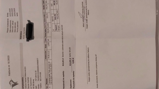 Aktualna faktura za leczenie Tosi,do tego dochodzą leki. Wyniki krwi będą w poniedziałek i wtedy dodamy aktualizację Dziękujemy za każdą wpłatę i udostępnienie!!! Razem możemy wiele❤️