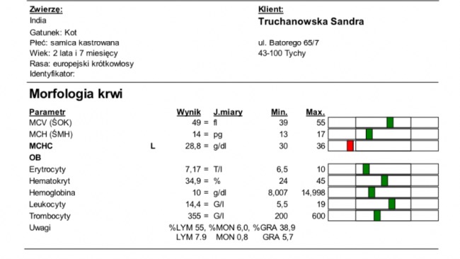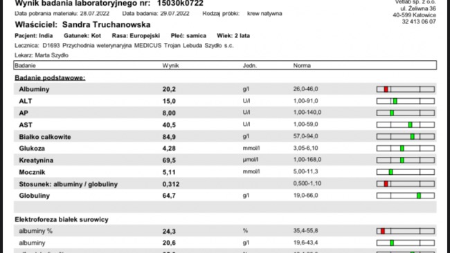 India na ten moment wygląda marnie, od 4 dni nic nie je. Dzisiaj w nocy wymiotowała 3 razy samą wodą. U weterynarza dostała kroplówkę i leki przeciwwymiotne. Jest mi tak przykro. Po niej widać, że jest strasznie pochorowana, a rozwinęło się to w takim tempie, że zdążyliśmy na prawdę na czas z wizytami. Kilka dni później mogło by już jej nie być :(