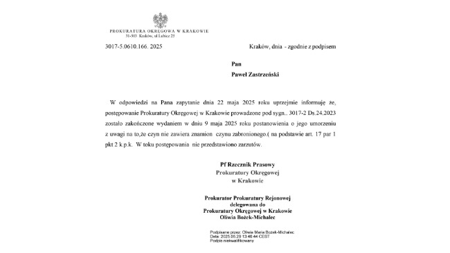 Umorzone. Dwa razy. Ale to nie koniec walki. Teraz trzeba zbadać, kto i co tam zeznawał. Ks. Jacek przygotowuje szereg spraw sądowych. Dzięki Tobie.