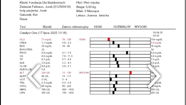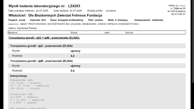 Jurek w ubiegłym tygodniu przeszedł kontrolę i powtórzyliśmy badania krwi. Mamy juz komplet wyników i są dobre.