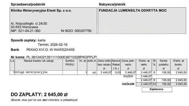 Bardzo przepraszamy, ale nie jesteśmy już w stanie pokrywać kolejnych kosztów z prywatnych środków ze względu na duże wydatki związane z leczeniem naszych podopiecznych.