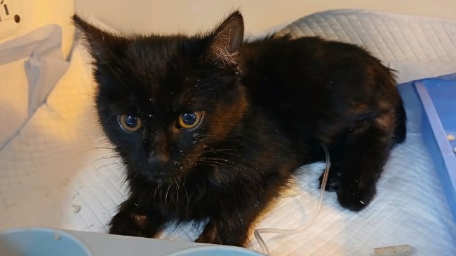 Zbadana w klinice, początkowo nie wykazuje aż tak bardzo niepokojących objawów. Okazuje się, że to koteczka. Dostaje imię Perła.